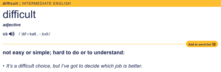 Cambridge University Press & Assessment, https://dictionary.cambridge.org/us/dictionary/english/difficult. Accessed 31 Jan. 2025